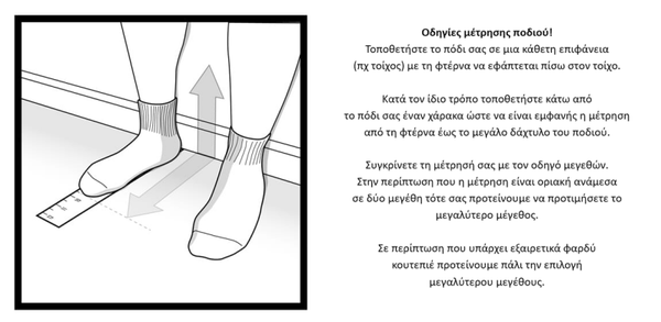 Η επιλογή μεγέθους προτείνουμε να είναι ένα (1) μόνο αριθμό μεγαλύτερου χρόνου. - Η μέτρηση στο πέλμα γίνεται ως εξής :