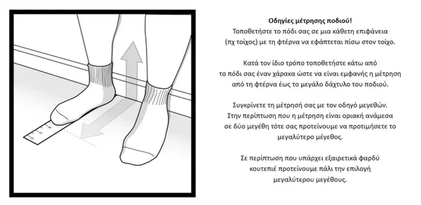 Η επιλογή μεγέθους προτείνουμε να είναι ένα (1) μόνο αριθμό μεγαλύτερου χρόνου. - Η μέτρηση στο πέλμα γίνεται ως εξής :